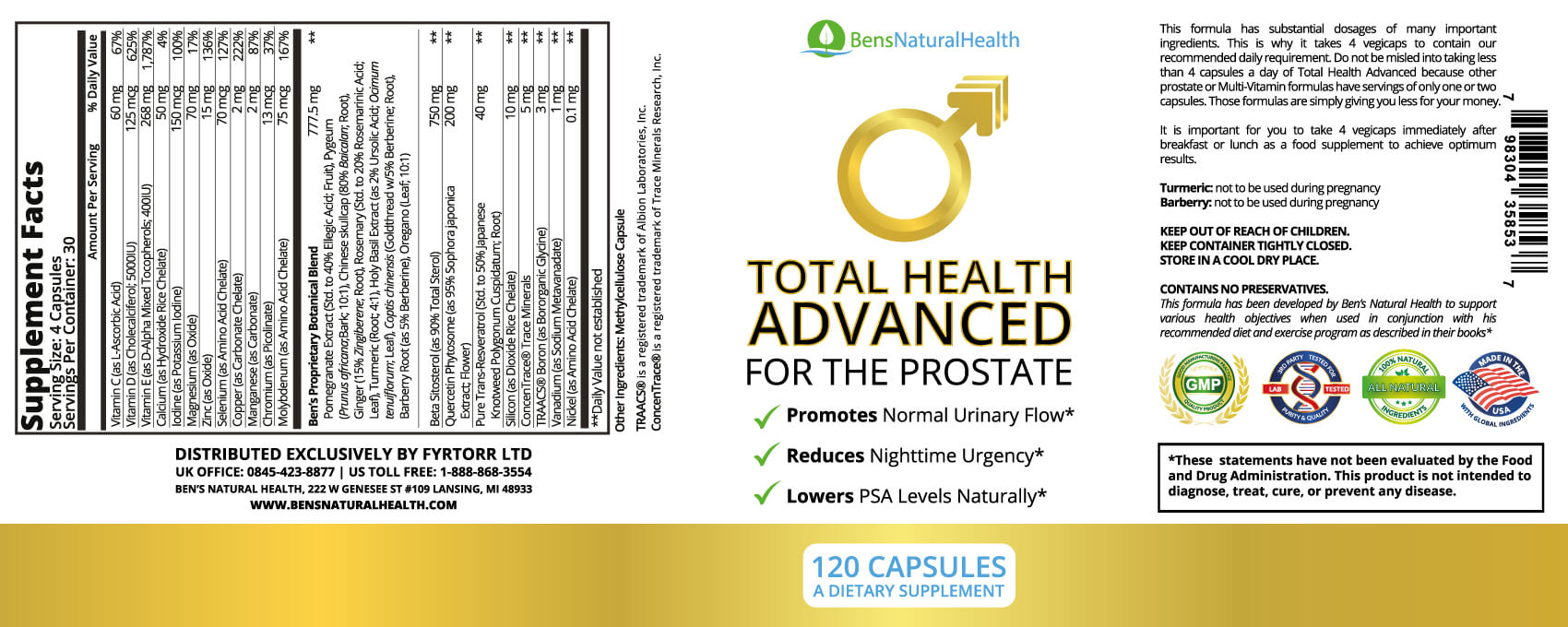 All the ingredients in Total Health For The Prostate are 100% natural; the formulation does not contain synthetic vitamins, GMO ingredients, or artificial fillers.