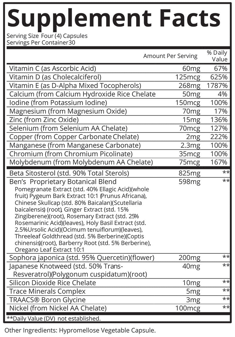 Each ingredient in Total Health For The Prostate is 3rd-party tested. The final formulation is then tested again at a different US-based lab, ensuring purity, safety and potency.